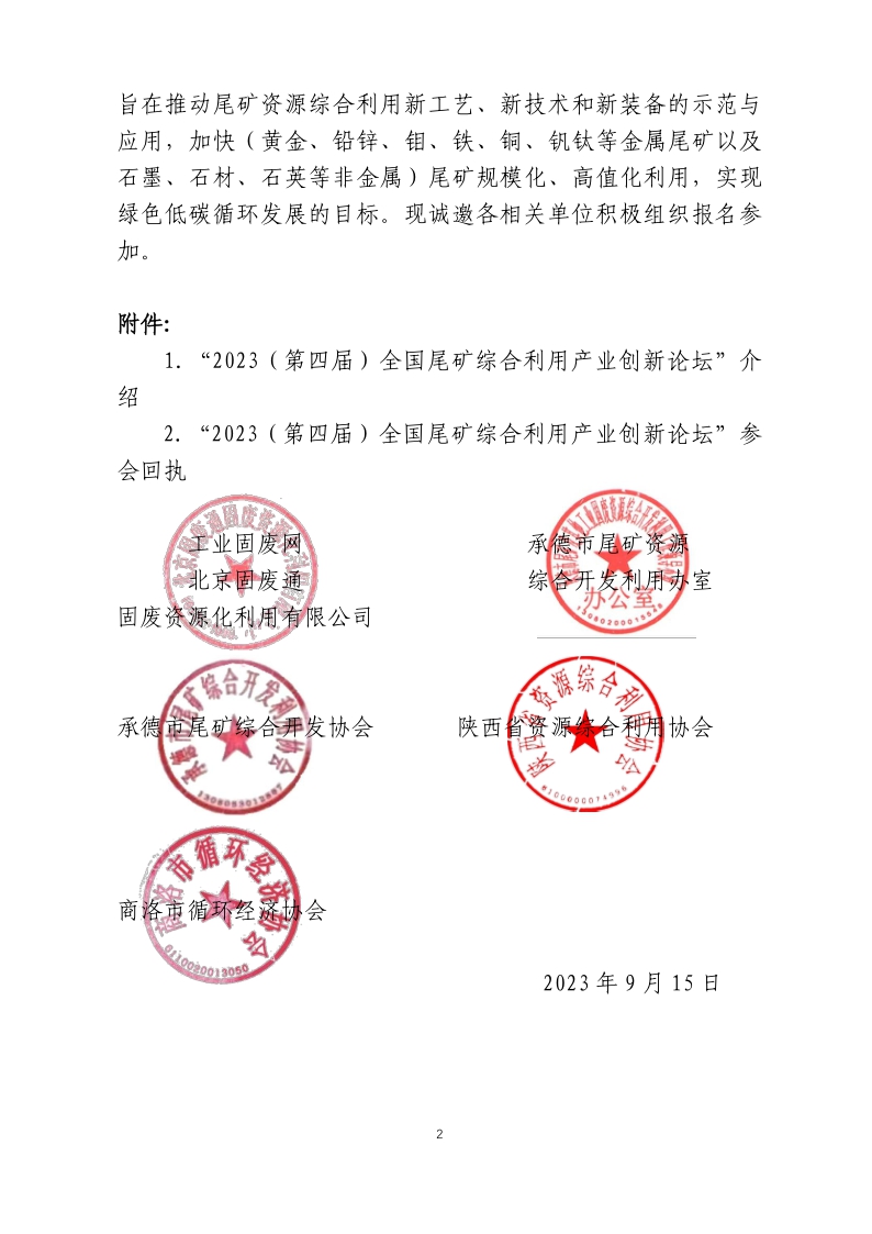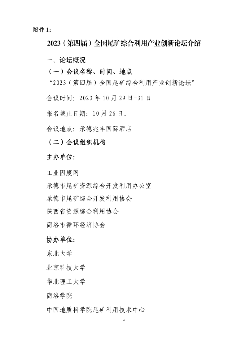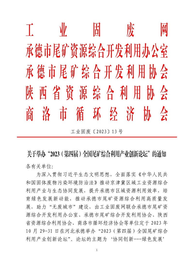 關(guān)于舉辦“2023(第四屆)全國(guó)尾礦綜合利用產(chǎn)業(yè)創(chuàng)新論壇”的通知